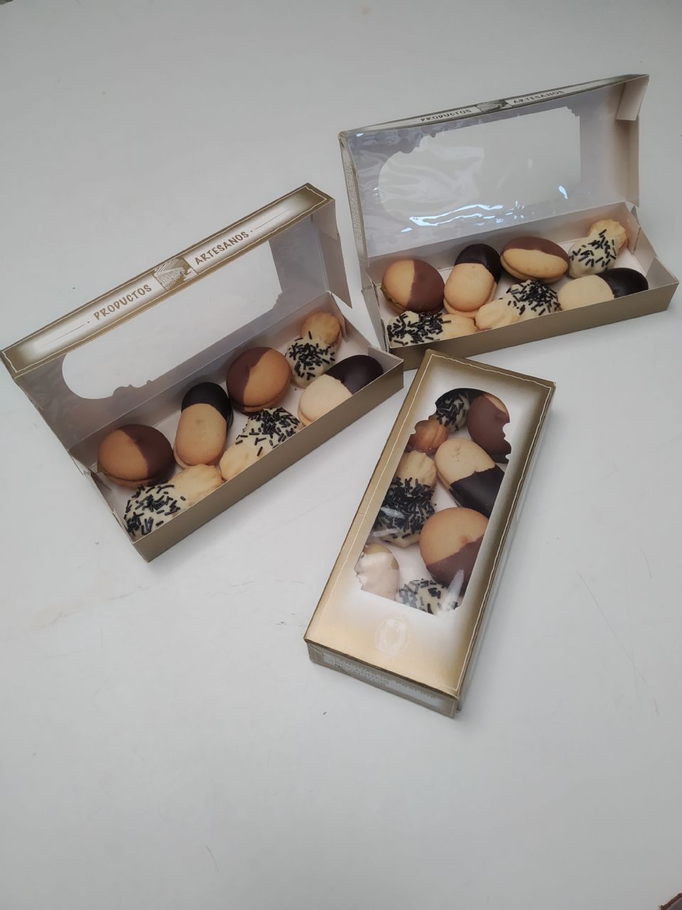 Estuche de lo más selecto en pastitas de Te con diferentes rellenos y decoraciones.